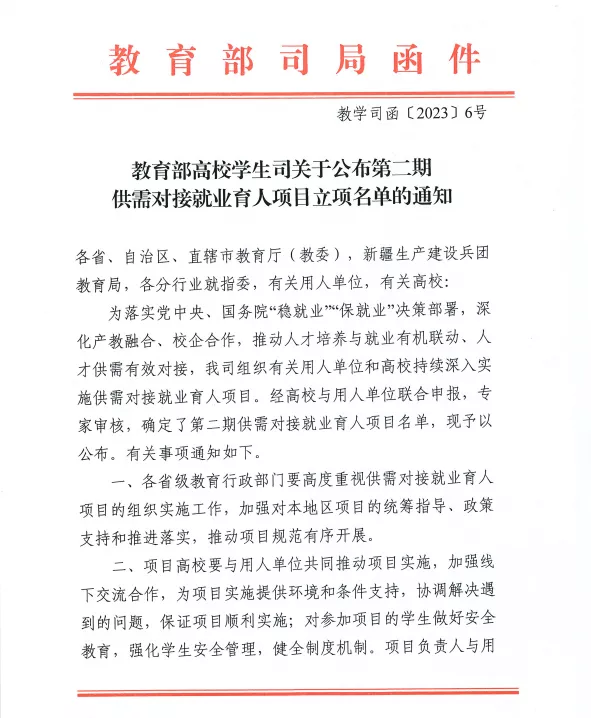 近日,教育部高校学生司公布第二期供需对接就业育人项目立项名单。未来科学与工程学院和博众精工科技股份有限公司、百度在线网络技术(北京)有限公司分别申请的就业实习基地项目和定向人才培养培训项目,获准立项。