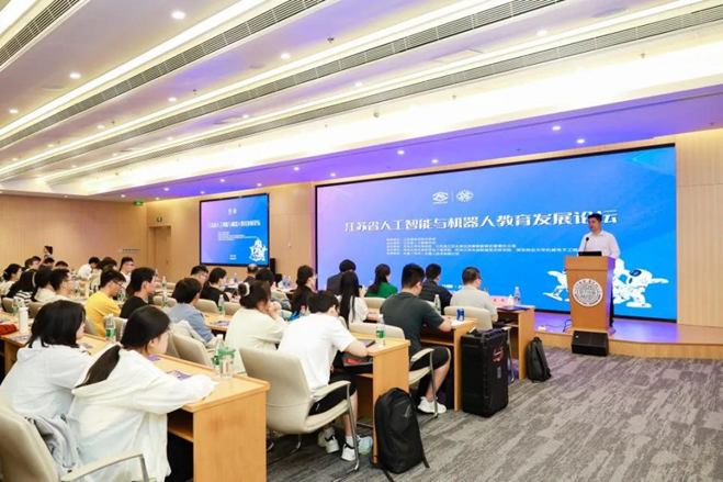 当天,江苏省人工智能与机器人教育发展论坛也同期举行。苏州大学党委常委、副校长沈明荣,大赛组委会总裁判长、中国人工智能学会机器人文化艺术专委会副主任委员钟秋波,江苏省人工智能学会理事长陈松灿,未来科学与工程学院党委书记吉伟,江苏赛区裁判长、未来科学与工程学院副院长(主持工作)陈涛等出席活动。