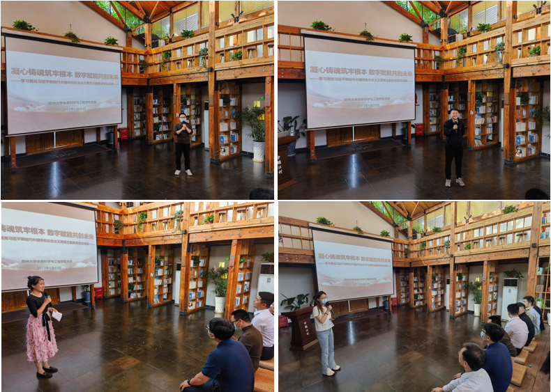 在讨论交流环节,党员老师们立足岗位,结合学习感想,为学院教育事业发展、学院服务经济社会发展和乡村振兴积极建言献策。综合党支部副书记、人工智能研究领域彭涛副教授表示,坚持科技兴农,学院应发挥桥梁作用,提升产教融合效能,将项目做在田间地头,把论文写在祖国大地,扎根乡村,让新工科创新人才大有可为,让数字赋能乡村产业发展。学院行政人员代表卢征、杨秋实和辅导员代表许梦琦表示,要在落实德智体美劳“五育并举”过程中,弘扬以爱国主义为核心的民族精神和以改革创新为核心的时代精神,强化社会主义核心价值观教育,要传播乡土文化,让学生走进农村、走近农民、走向农业,了解乡情民情,培育学生服务乡村、建设乡村的家国情怀,做到学以致用、知行合一。