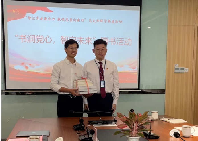 在“书润党心,智启未来”赠书活动中,郭桁熙代表华泰证券苏州新市路党支部向学院综合党支部赠书,通过理论联学,筑牢思想之基,补足精神之钙,不断增强党的创造力、凝聚力、战斗力。