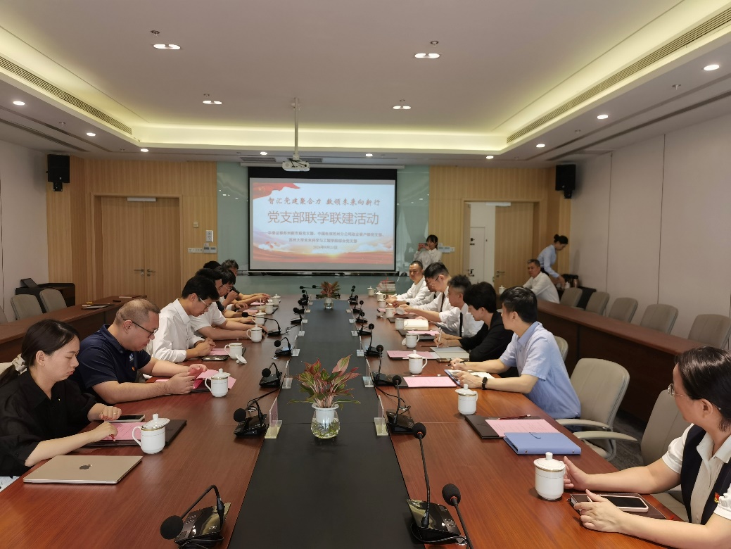 为深入学习贯彻党的二十届三中全会精神和习近平总书记关于新一轮改革战略重点的重要论述精神,9月23日,未来科学与工程学院综合党支部与华泰证券苏州新市路党支部、中国电信苏州分公司政企客户部党支部开展联学共建活动。华泰证券苏州分公司党总支书记、分公司总经理刘晓冰,华泰证券苏州新市路党支部书记郭桁熙,中国电信苏州分公司政企客户部党支部委员、政企客户部副主任张迪,未来科学与工程学院党委书记吉伟,常务副院长陈涛,副院长、综合党支部书记王进以及各党支部党员代表参加活动。本次活动由王进主持。