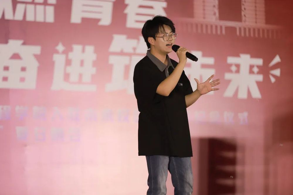 杨聪副教授代表教师发言,杨老师分享了自己的求学经历和在学院工作、生活的感受,并表态会珍惜机会,为各位同学的茁壮成长保驾护航,为国家培养更多优秀人才!