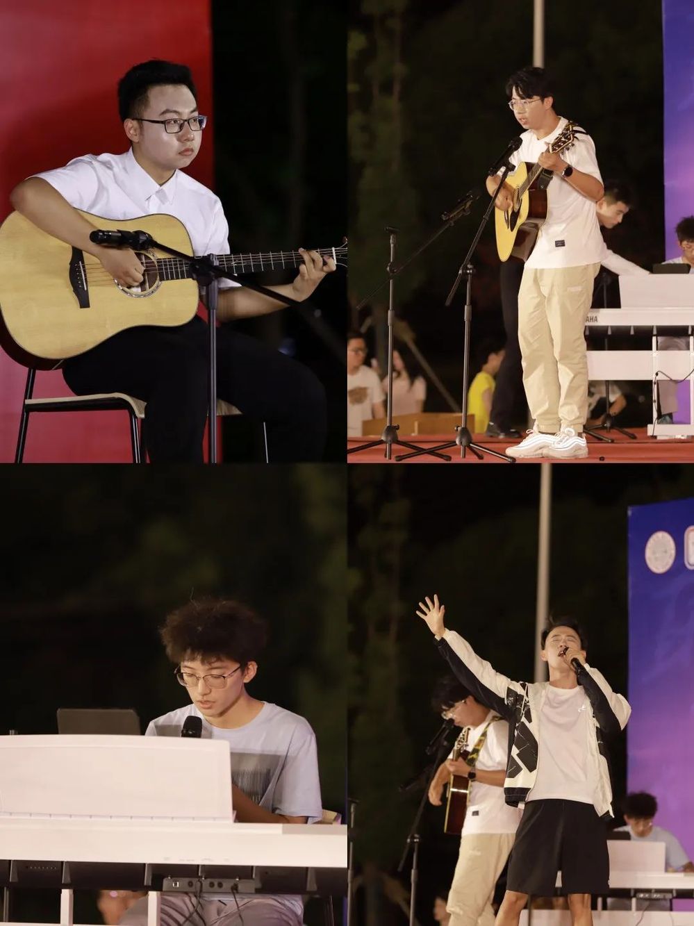 欣赏过乐器演奏后,便是由唐沛、赵逸群、周熠、秦首一四位表演者带来的歌曲串烧,他们歌声饱满又不失通透,深情又不显造作,我们永远风华正茂,我们永远向阳而生。