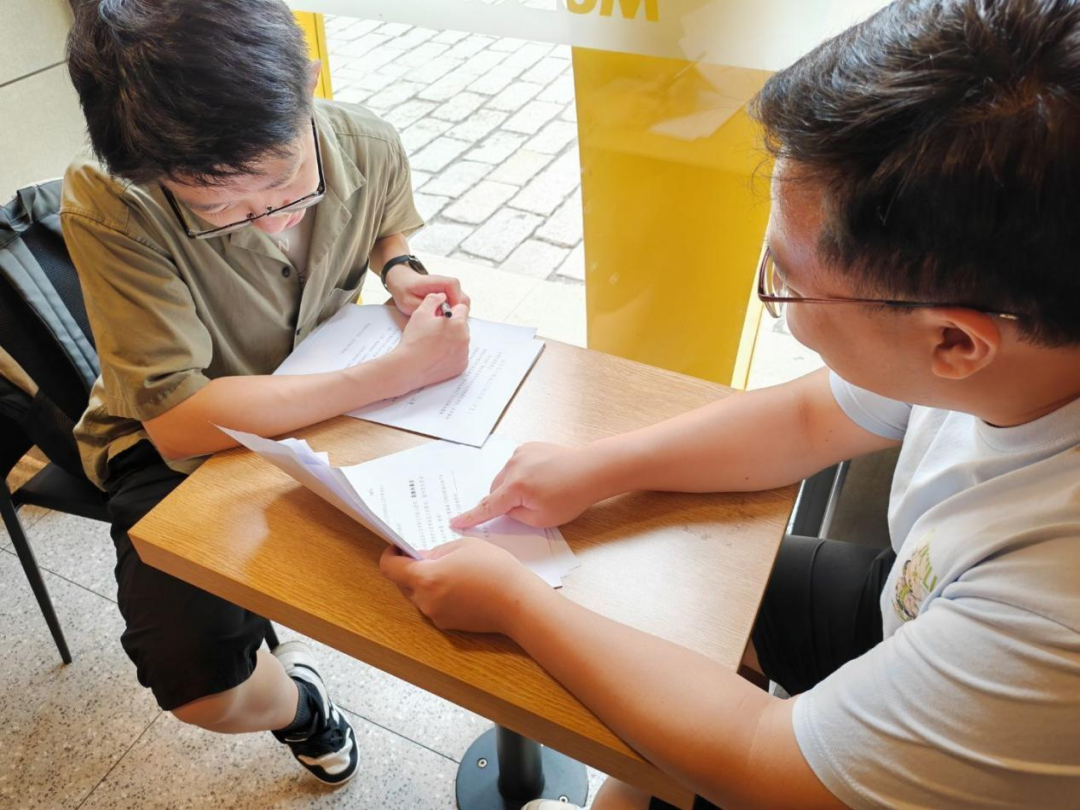 图为团队成员在同里古镇景区分析讨论游客问卷并改进
