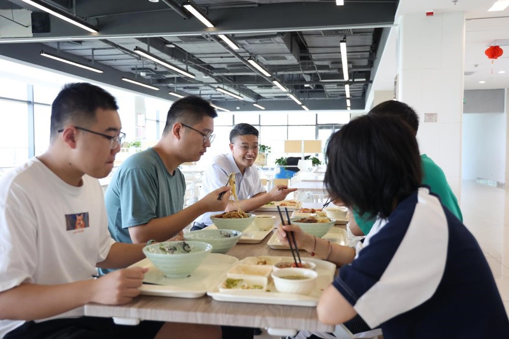 未来校区管委会副主任刘超向校主题教育领导小组办公室报告未来校区的基本运行情况。校主题教育领导小组办公室细致考察了教学中心、体育馆、学生公寓、未来科创中心实验室的基本情况,并实地考察了未来校区二期施工情况,邓敏强调要坚守为师生服务初心,不断优化总体布局,高标准、高效率推进校区建设。在学生食堂,校主题教育领导小组办公室成员与师生亲切交流,详细了解食堂服务质量提升情况。