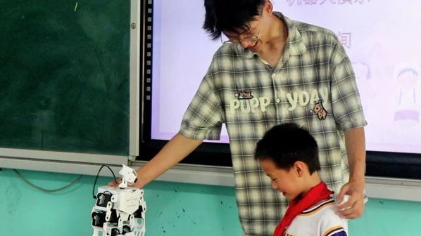 实践团以科普和美育为核心,设计了一系列特色课程。机器人科普课上,机器人的炫酷表演伴着孩子们的欢声笑语,以智能启蒙打开科技视野;物理化学趣味实验中,化学试剂的奇妙反应与力学实验的有趣现象,引导学生在常见生活现象探究中感受科学魅力;美术、音乐和手工课,以多彩创意润泽学生心灵,培养审美与艺术素养;体育课程中的趣味项目,融合竞技与娱乐,续写活力与成长的篇章。