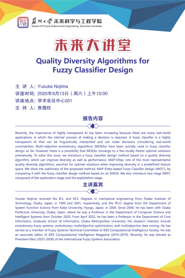 未来大讲堂 | Quality Diversity Algorithms for Fuzzy Classifier Design