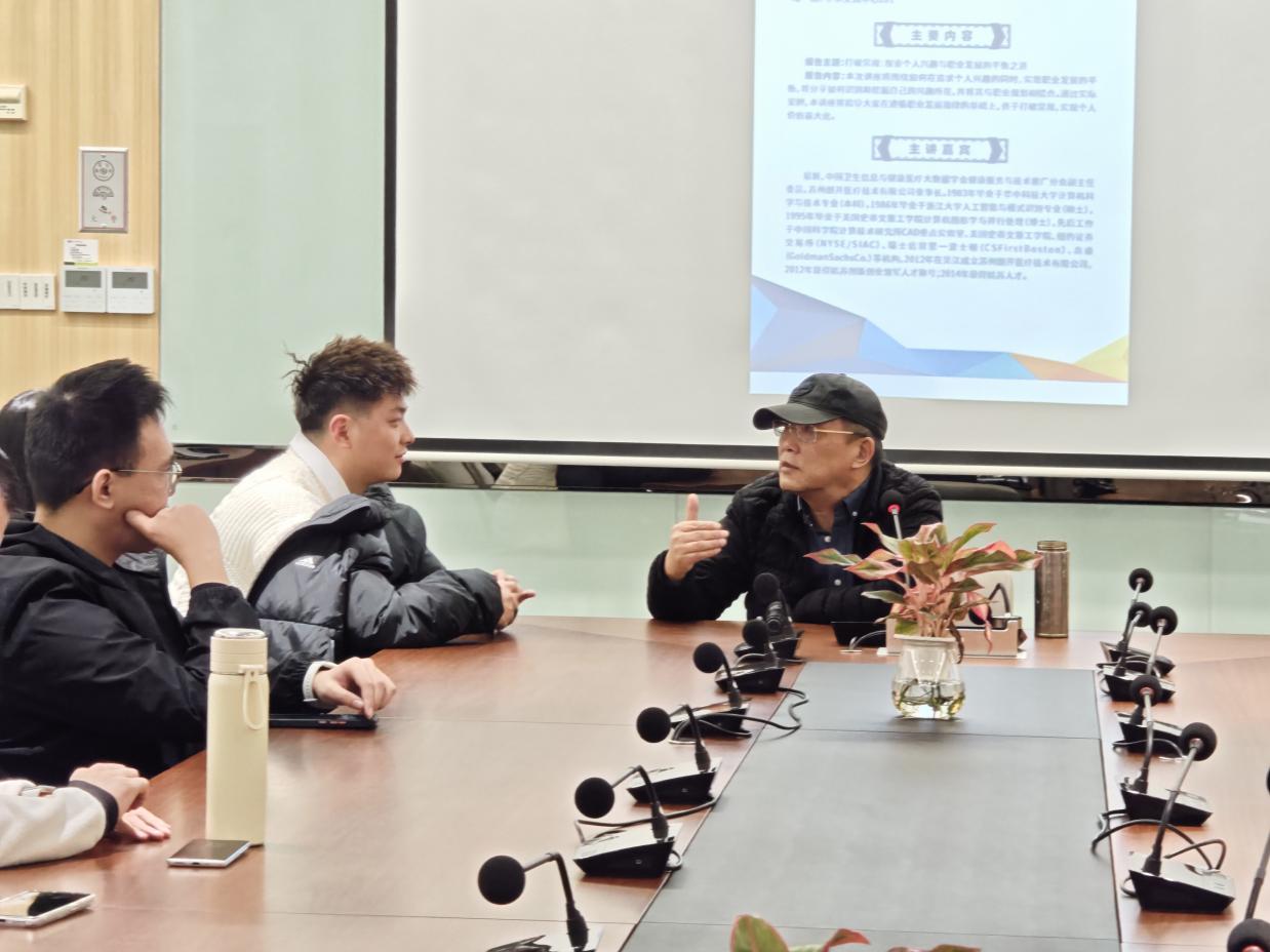 易新老师以其丰富的专业背景和职业经验,为在场学生提供了宝贵的指导和启发。他从个人成长经历出发,分享了如何识别和挖掘自己的兴趣所在,并将其与职业规划相结合,实现个人价值最大化。易新老师强调,个人兴趣是职业发展的重要驱动力,但同时也需要遵循职业发展的规律。他将自己的亲身经历作为实际案例,指导学生如何在追求个人兴趣的同时,实现职业发展的平衡。他鼓励学生们勇于打破常规,探索适合自己的发展道路,同时强调了终身学习的重要性,以适应快速变化的科技和社会环境。