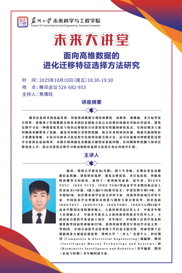 未来大讲堂 | 面向高维数据的进化迁移特征选择方法研究