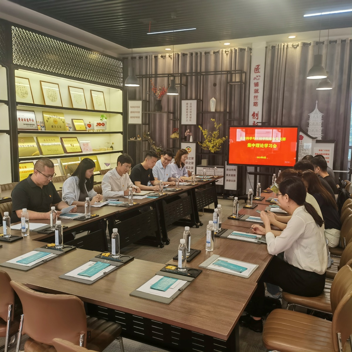 参观学习后,为持续深入学习贯彻习近平新时代中国特色社会主义思想,进一步提高党性修养,党支部开展集中理论学习并交流学习体会。会上由党支部宣传委员程诚、纪检委员杨本圆老师领学。党员们围绕本次学习内容《习近平致全国优秀教师代表的信》和浙江“千万工程”经验案例展开了讨论,为学院的教育教学改革、人才培养积极献计献策。这次理论学习,进一步提高了学院教师对教育教学工作的认识和热情,党员教师们将会以更高的标准,更严的要求,更实的举措,不断提高自身教育教学水平,为培养更多优秀人才和为国家发展作出更大贡献而努力奋斗。
