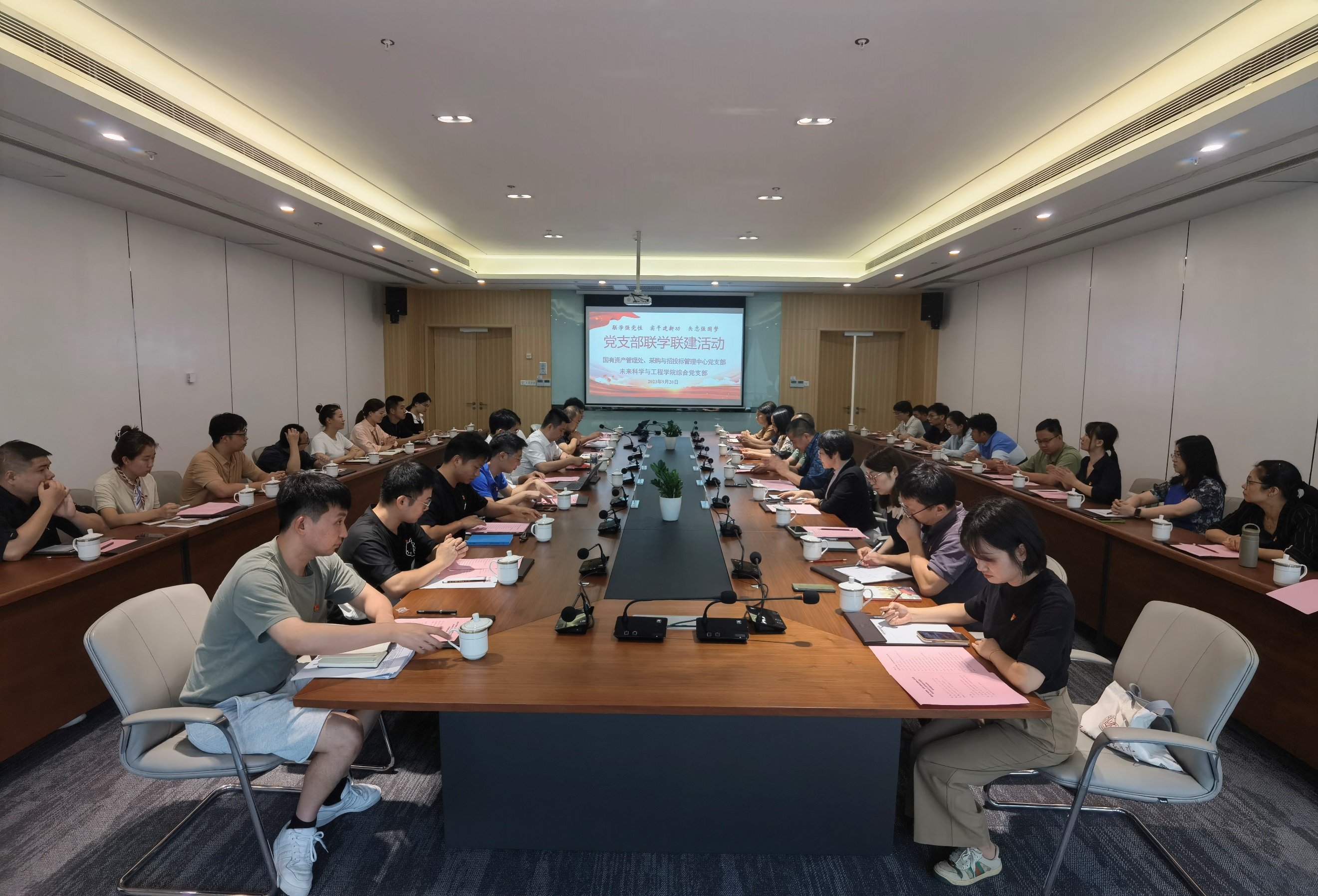 为持续巩固主题教育成果,以党建联建解难题促发展, 9月20日,国有资产管理处、采购与招投标管理中心党支部和未来科学与工程学院综合党支部开展“联学强党性 实干建新功 矢志强国梦”联学共建主题党日活动。校党委常委、副校长查佐明,国有资产管理处处长陈中华,国有资产管理处副处长兼采购与招投标管理中心主任刘丽琴,国有资产管理处副处长姚红美,未来校区管委会主任、未来科学与工程学院党委书记吉伟,未来校区管委会副主任刘超,未来科学与工程学院副院长(主持工作)陈涛,未来科学与工程学院副院长书记王进以及所属党支部党员参加活动。活动由王进主持。