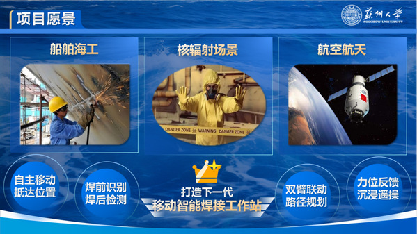 学院4名2023级本科生跨专业(机器人工程、机械电子工程、人工智能专业)组队,在陈涛、李轩老师指导下,研发 “灵焊者”——智能双臂移动灵巧焊接机器人。该机器人攻克自主定位导航、焊缝质量检测、双臂自主协同焊接与遥操作焊接等四大核心技术,实现焊接全流程自主闭环作业,可应用于船舶海工、高危环境、航空航天等领域。项目获评委高度认可,被认为是在焊接机器人领域的一次结合具身智能、智能感知、自主控制与人机协同的卓越创新实践。