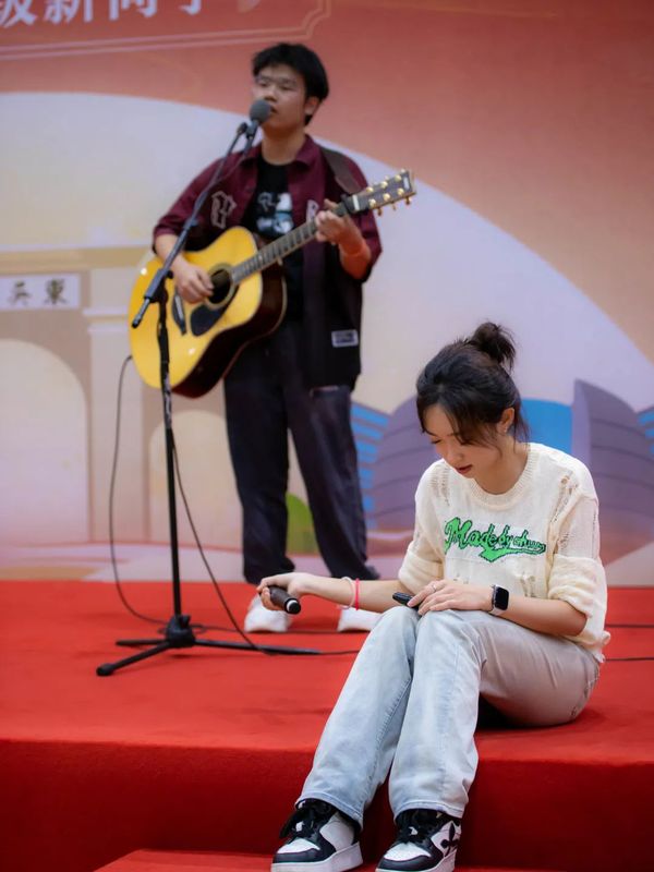 窦浩、陶天雨同学带来弹唱《发如雪》,深情的旋律流淌进了每个人的心底。