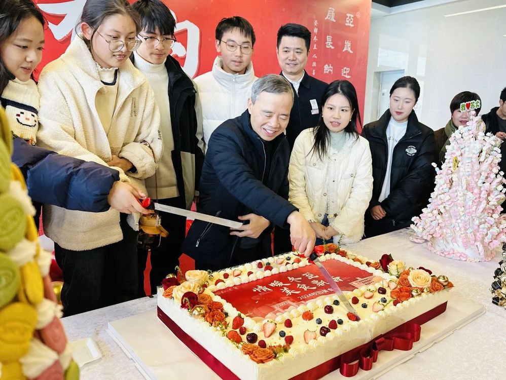 活动现场,学校为同学们准备了各式各样的蛋糕和甜点,每一口都饱含冬日的温馨与甜蜜。特别制作的超大冬至蛋糕成了全场焦点,在分享中,同学们品尝了冬至的独特味道,也收获了彼此间的浓浓暖意。