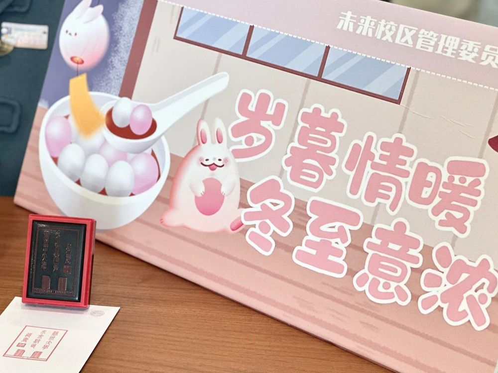校区管委会也贴心地为同学们准备了暖冬福利——热气腾腾的桂花小圆子,美好寓意的定制书签、苏大明信片,岁暮情更暖,冬至意更浓。