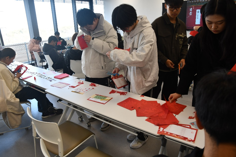 同学们全神贯注地投入到剪纸创作中,一张张普通的彩纸在他们的巧手下,变成了一幅幅栩栩如生的图案。每一个剪纸作品都蕴含着同学们的创意和用心,在岁寒之际为校园增添了一份温暖。