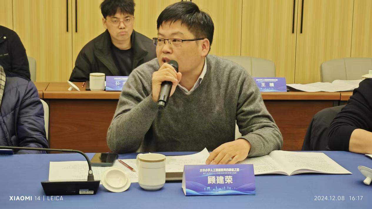 吴江区教育局教研室主任顾建荣强调中小学人工智能教育应从信息技术向信息科技转变,突出数学、信息意识、计算思维和创新能力的重要性。他指出编程教育和人工智能教育是不同的教育路径,并讨论了人工智能领域的复杂性,包括强弱人工智能和算法黑匣子问题,以及AI内容生成的准确性挑战。他的发言启发了与会者对实现人工智能教育目标的深入思考。