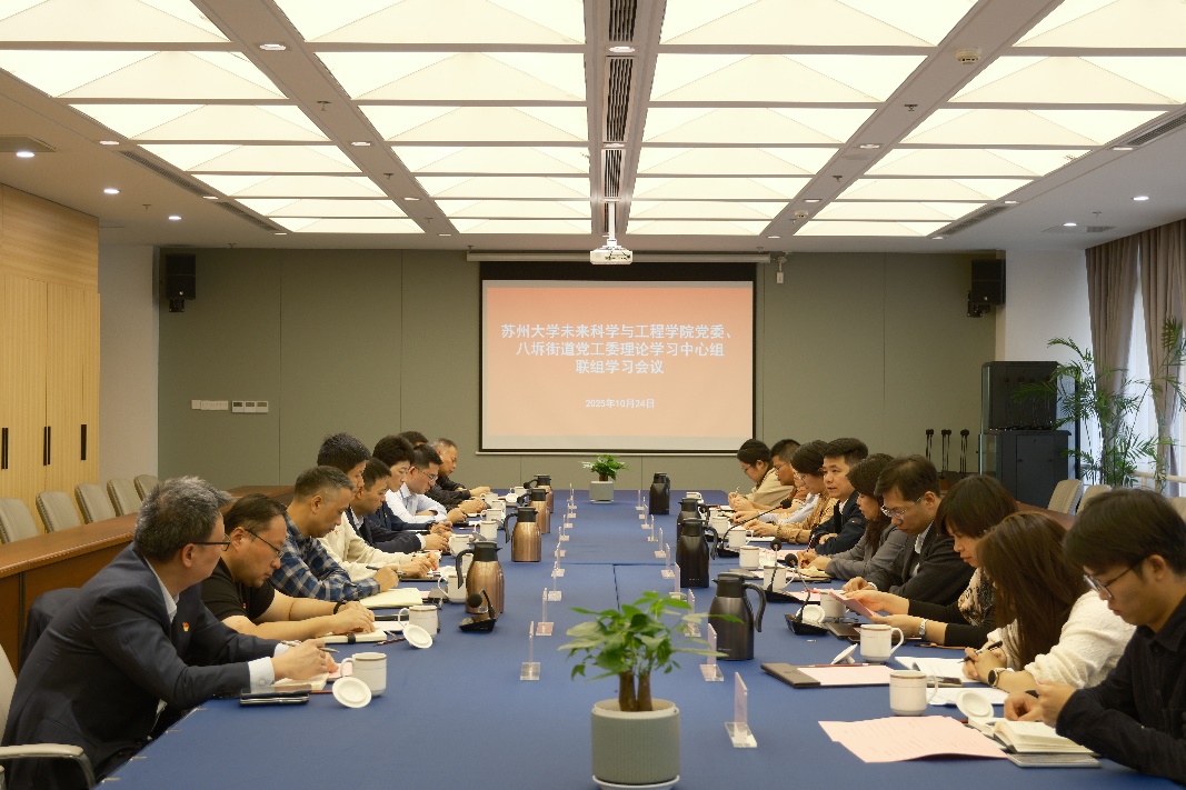 为深入学习贯彻习近平总书记关于推动高质量发展的重要论述,深化校地协同创新机制,2025年10月24日下午,未来科学与工程学院党委与吴江区八坼街道党工委开展理论学习中心组联组学习,以联学互鉴筑牢合作根基,以双向赋能推动高质量发展。吴江区委宣传部副部长方贤实,学院与八坼街道领导班子成员,区委巡学旁听组成员及八坼商会代表共同参与此次学习会。学习会由学院党委副书记、副院长陈贝贝主持并领学。
