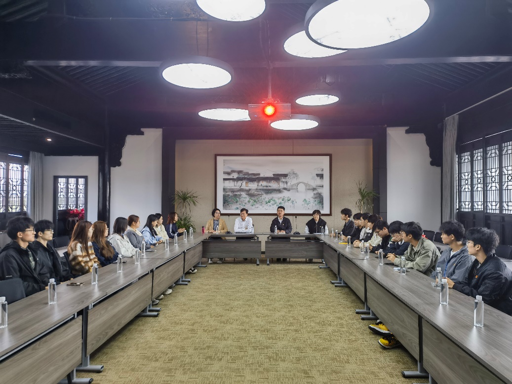 党委书记吉伟以黎里古镇的人文底蕴与柳亚子先生的精神特质为切入点,提出更高要求,希望研究生们在AI技术快速发展的时代浪潮中,既要重视交流,更要锤炼独立思考、敢为人先的核心能力;既要保持对未来的探索欲,在守正创新中突破自我,也要平衡好学习与生活,提升身体素质,以健康体魄支撑长远发展。