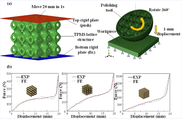 “深入企业实际场景,着眼于拓展3D打印在超精密光学制造中的应用可能。”项目合作之初,樊成教授团队便深入企业生产一线,聚焦超精密光学表面制造的实际痛点:传统刚性抛光工具易对玻璃表面造成损伤,柔性技术又存在效率不足的问题,而均质抛光头难以精准调控接触力,这些矛盾一直制约着加工精度与效率的协同提升。针对以上问题,研究团队探索3D打印在抛光工具中的应用潜力,创新提出基于三周期极小曲面(TPMS)结构的3D打印可变刚度抛光工具方案。
