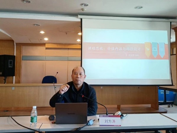 刘方涛作题为《课程思政的价值内涵与实践路径》专题讲座,提出课程思政作为育人载体,要重点教育学生“责任与担当”“如何做好人”“如何做好事”,在课程设计中融入家国情怀、人文素养、科学精神、深度学习、人格发展、实践创新六大思政元素,实现立德树人润物细无声。