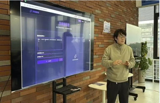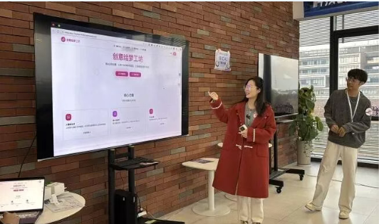 学院学子领取启动包后,用秒哒工具生成了专属炫酷主页并写入NFC,提前解锁了本次创意营的“数字身份”。在“AI脑洞宇宙”区,参与者借助AI生成最具创意的网站构想,突破思维定式,探索技术表达的多样可能。破冰组队环节,同学们通过NFC标签互贴,快速识别同领域、同方向的伙伴,自由组队,形成共创单元。各团队围绕真实行业痛点展开讨论,使用“秒哒”平台将创意迅速转化为可演示的AI应用原型。在路演环节,各团队依次登台展示作品,现场收获反馈与点赞。优秀项目上传至“秒哒广场”,参与全国评选并竞争平台推荐资源。