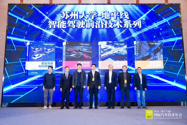 近日,2025(第十八届)国际汽车技术年会在上海隆重举办。在主论坛环节,由苏州大学未来科学与工程学院联合地平线机器人、中国汽车工程学会共同组织撰写的“智能驾驶前沿技术系列”大学本科/研究生专业教材正式发布。苏州大学未来校区管理委员会主任、未来科学与工程学院党委书记吉伟,学科建设与发展规划处处长陈涛以及未来科学与工程学院副教授杨聪出席了新书发布仪式,共同见证这一产教融合标志性成果的落地。
