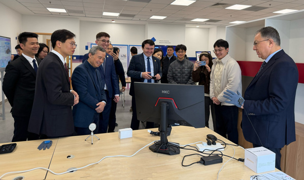 2月27日,哈萨克国立大学校长图梅巴耶夫·詹塞特一行到访未来科学与工程学院参观交流。苏州大学党委副书记、副校长沈明荣,吉伟、陈涛、王进、刘超等校区及学院相关负责人陪同参观。