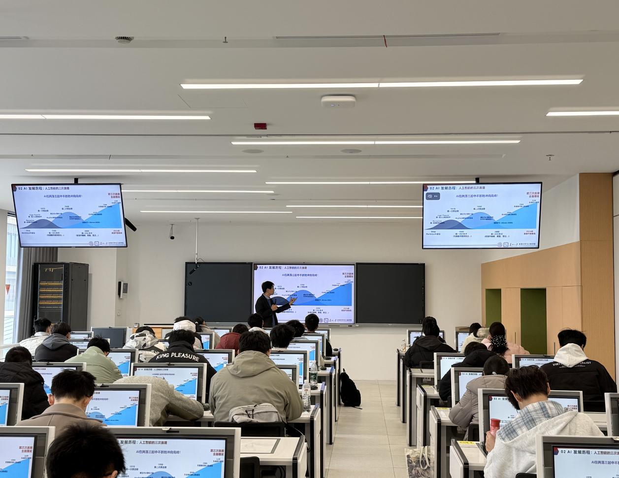 本次跨校区共享课堂为课程首创,实现两校区教学资源、师资力量与学生群体的深度共享,真正做到资源互通、师生同堂。课堂上,王进教授主导设计互动环节,与独墅湖校区的武婧老师同步配合,共同引导学生结合自身专业探讨“X+ai”的融合可能。不同校区、不同背景的学生同堂学习、实时交流,不仅深化了对AI工具的理解,更点燃了跨学科创新的热情。