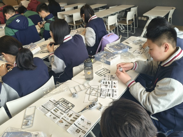 学长学姐们详解“机器狗”、“新能源车”的原理与构造,并带领同学们动手制作“机械狗”、“新能源车”模型。同学们在协作中思考、在实践中探索,趣味问答环节你来我往,现场气氛热烈活跃。