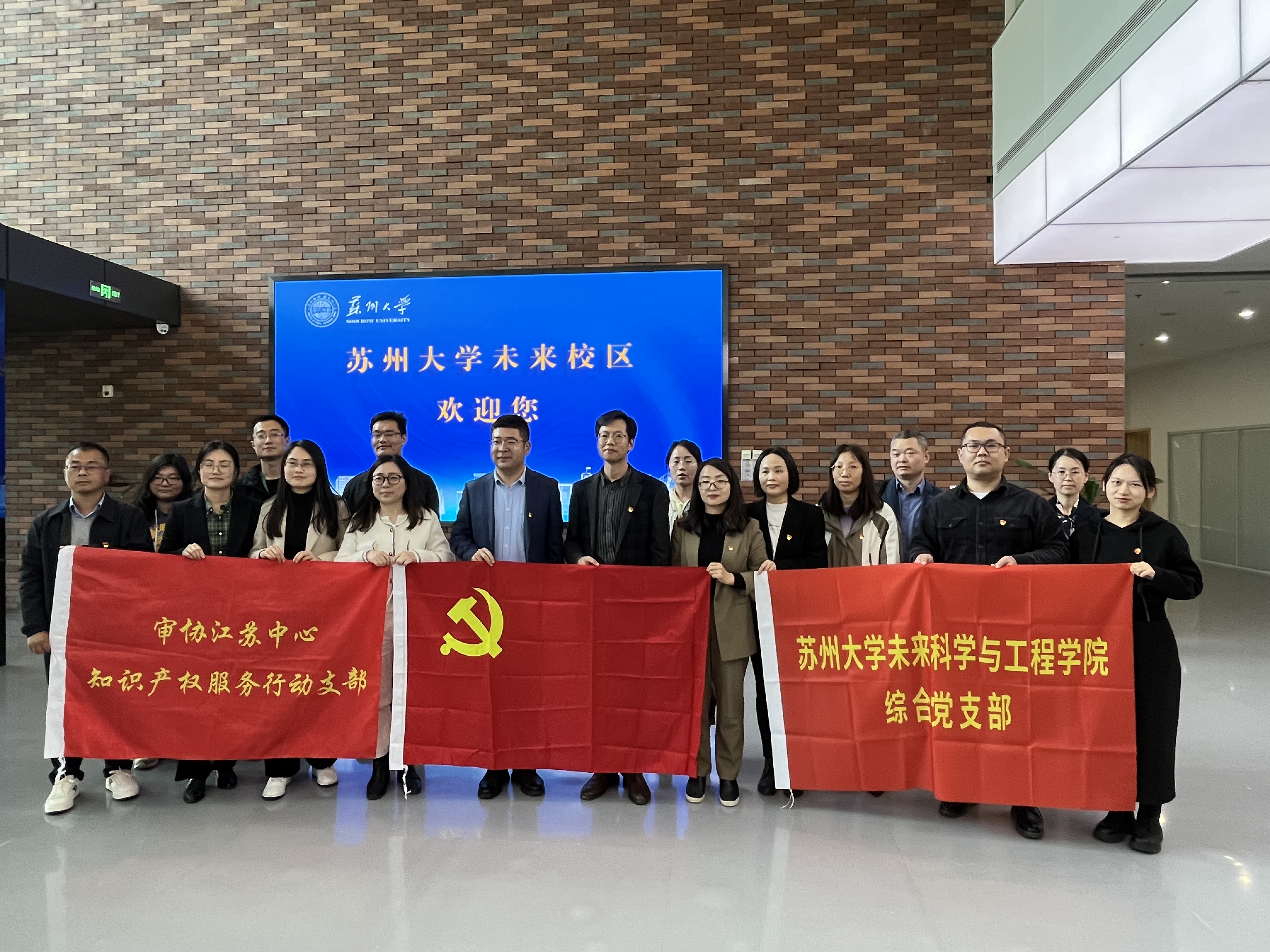 为深入贯彻落实全国两会精神,坚持牢牢把握高质量发展根本任务,以高质量党建引领科技创新发展,提高青年教师和党员的科技创新能力,以高水平有组织的科研攻关、科技成果转化和创新人才培育为新质生产力发展增势赋能,2024年4月9日下午,未来科学与工程学院综合党支部与国家知识产权局专利局专利审查协作江苏中心机械部党支部(以下简称审协江苏中心机械部党支部)开展“党建引领双融双促 因地制宜发展新质生产力”联学共建主题党日活动。审协江苏中心机械部党支部书记、通用工程室主任陈东伟,通用工程室副主任陈友玲,车辆工程室副主任李雅娟,专利局派指导专家张风晨,苏州市机器人产业协会副秘书长薛芮,未来科学与工程学院常务副院长陈涛,未来科学与工程学院副院长、综合党支部书记王进以及支部党员代表参加活动。活动由陈涛副院长主持。