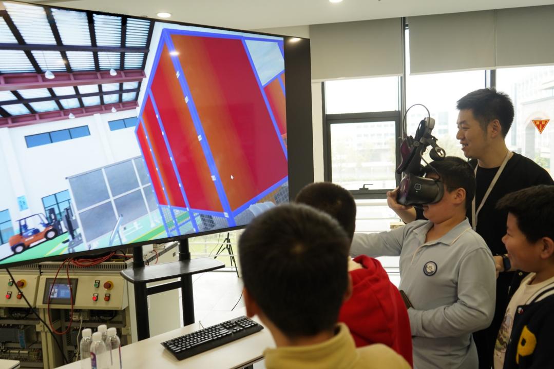 本次活动由学院综合党支部李溍溍、黄聿辰等多名党员和入党积极分子负责,他们带领“筑梦未来”创新公益科普实践团志愿者为“未来少年计划”学生们呈现了一场生动有趣的智能科技体验。体验营的同学们在参观了充满科技感的未来校区、感受到了大学校园的浓郁的学习和科研氛围后,深入学院实验室和科技创新平台,亲身体验了VR虚拟工厂、智能检测系统、智能分拣系统等现代工业化设备,以及虚拟现实技术、物联网、大数据、机器视觉等先进技术在实际工作场景中的应用,体验营的同学们表现出了极大的兴趣。