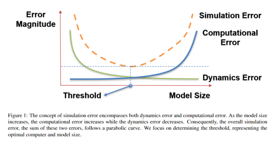 当前,建模和数值计算被拆分成了两个独立的学科:前者在假设计算无限精度的前提下,专注于构建反应物理规律的模型;后者在假设模型无限精度的前提下,专注于模型计算的实现。然而,在实际系统仿真计算中两者并不独立。仿真误差为动力学误差与计算误差之和。随着考虑的参数越全面,模型规模越大,动力学误差减小,然而计算误差会增加。采用降阶模型进行仿真,虽然会引入部分动力学误差,但是可以大幅降低计算迭代次数和数据存储量,进而减少计算误差,其计算结果可能比高维原模型更准确(如下图所示)。在此背景下,沈宇凌老师团队以柔性张拉整体结构为研究对象,基于模态截断构建了计算仿真集成两者的数学框架,并验证了该科学假设。