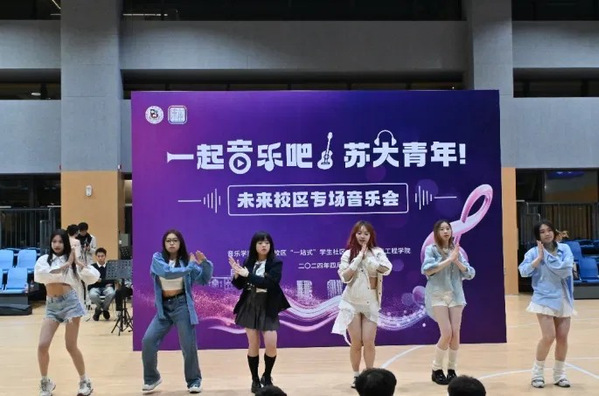 音乐,这一跨越时空的艺术形式,以其独特的方式触及人们的心灵深处,为美与情感的传递搭建了桥梁。4月26日晚20:40,刚刚结束了紧张的期中考试,同学们纷纷涌向未来校区篮球馆,赴一场晚间的音乐盛会。