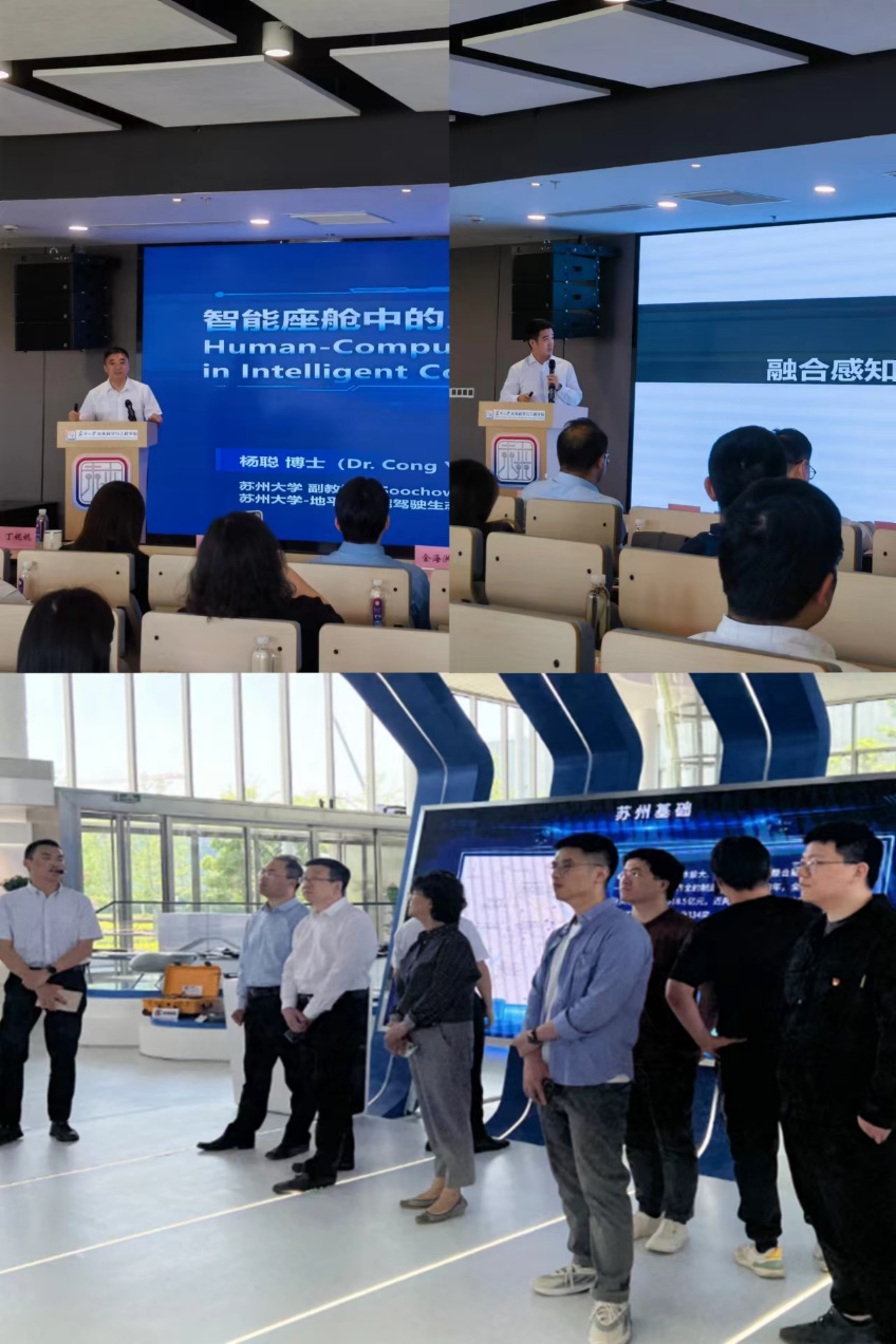 在“创新苏州湾”博士论坛中,我校两位青年教师代表杨聪副教授、朱铭鲁副教授分别围绕车联网、人机交互等领域作主题报告,与会人员就相关主题展开互动和交流。随后,与会人员参观了苏州市低空经济发展展示馆,从低空起航、低空蓝图、竞逐低空、低空腾飞四大板块深入了解低空经济产业基础、配套设施、未来重点探索等内容以及苏州市低空经济发展新样态。