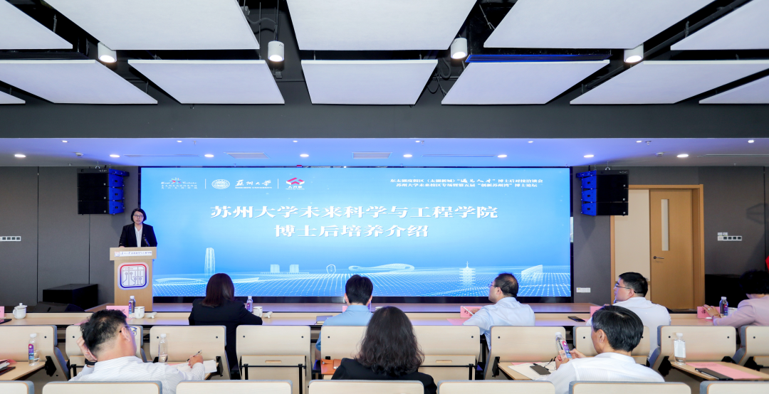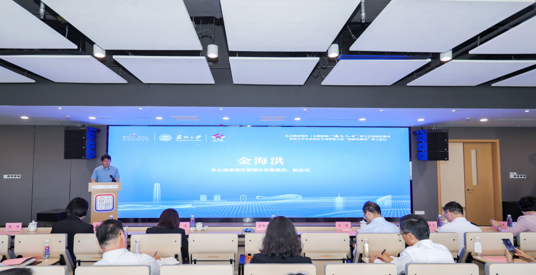 为深入贯彻习近平总书记因地制宜发展新质生产力的重要指示精神,以人才驱动太湖新城数字经济创新集聚区建设,加快区域发展新质生产力,5月17日,吴江太湖新城“遇见人才”博士后对接洽谈会暨第五届“创新苏州湾”博士论坛在未来校区举行。东太湖度假区管理办党委委员、副主任金海洪,我校人力资源处副处长章宪,未来校区管理委员会副主任刘超,未来科学与工程学院院长助理丁妮妮以及吴江区相关部门负责人出席活动。吴江区企业国家级博士后科研工作站代表,我院青年教师、博士后和在读博士代表应邀参会。