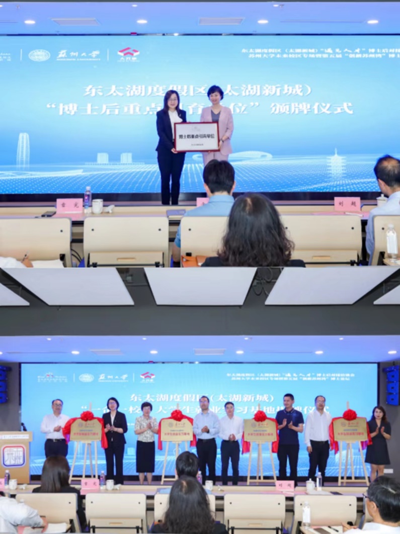 活动现场,未来科学与工程学院被聘为东太湖度假区(太湖新城)“博士后重点引育单位”,与乐聚(苏州)机器人技术有限公司等4家企业共建“一企一校”就业实习基地。吴江区9个国家级博士后工作站“张榜”出题,介绍拟开展的博士后项目及企业需求情况。与会的相关科研团队成员、青年教师和在读博士们踊跃响应、“揭榜”领题,就项目的目标内容、技术路径、合作空间、科研保障等展开深入交流对接。